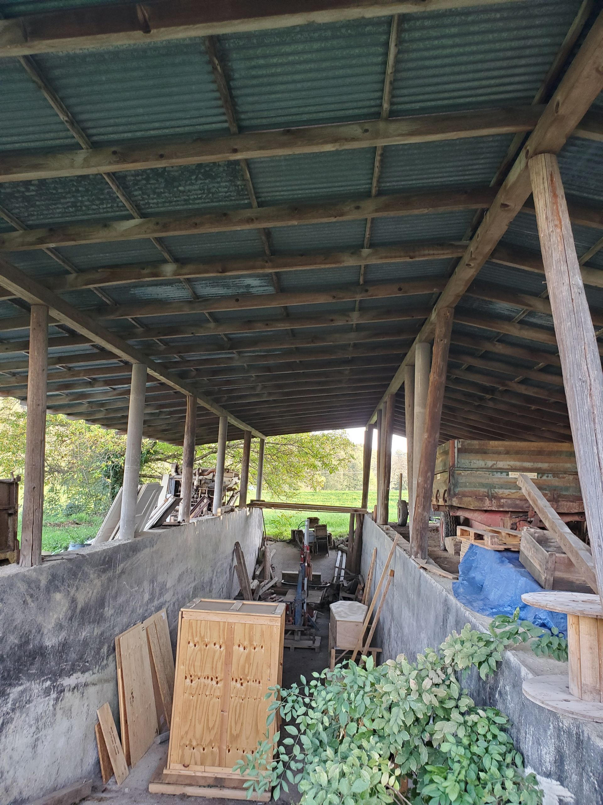 où nous avons créé le "Silo à grain" : un espace couvert, atypique et chaleureux, ouvert sur les prés !